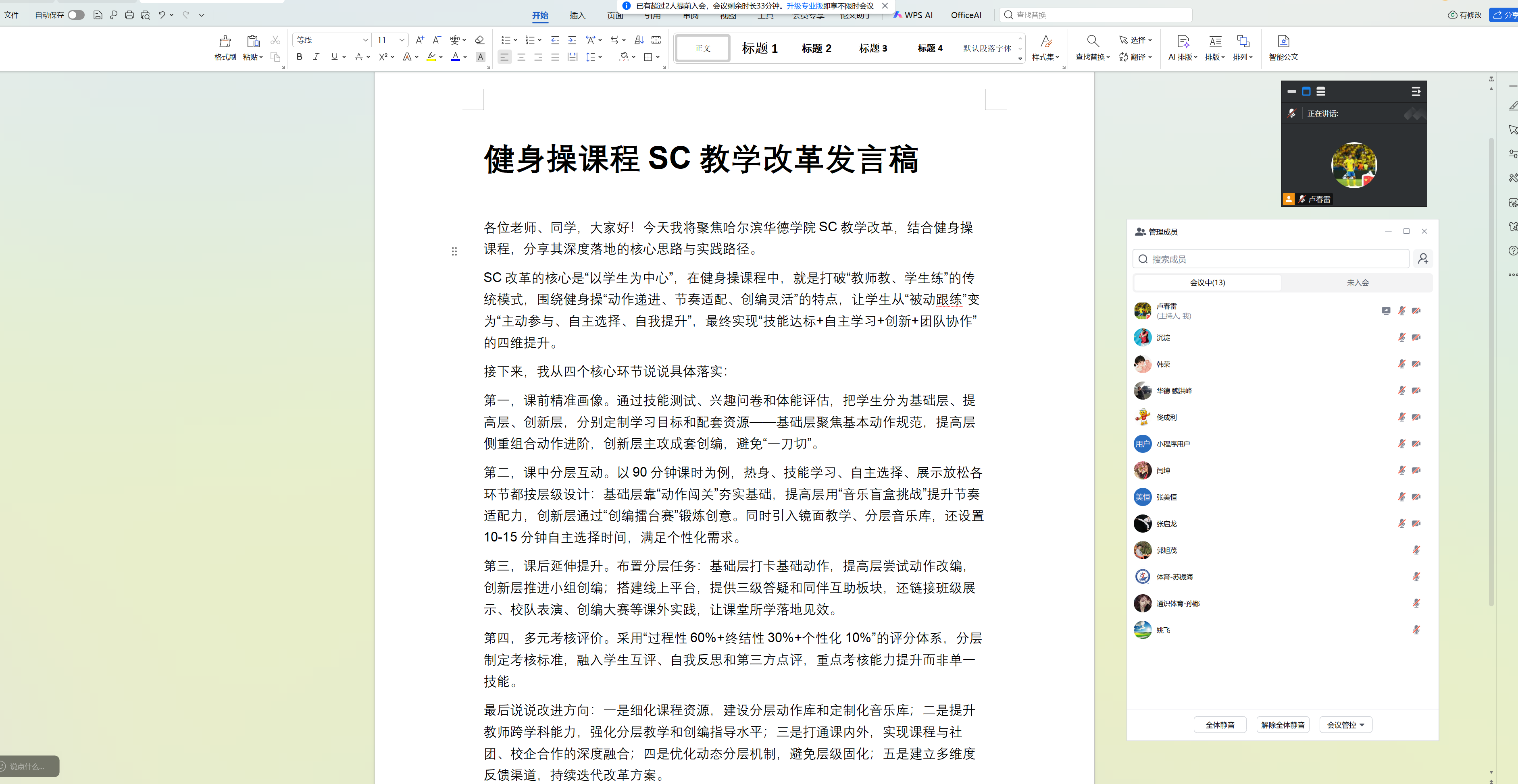会上,教师们针对从“教”为中心到“学”为中心的全新课题,以太极拳、篮球、乒乓球、羽毛球等课程为例,结合课程特点与自身教学实践,对SC教学模式在体育课程中的具体实施方式进行了热烈讨论。通过讨论,教师们重塑了教学理念”,认识到教师角色必须主动转型,授课过程需要精心设计,确保学习真正发生。