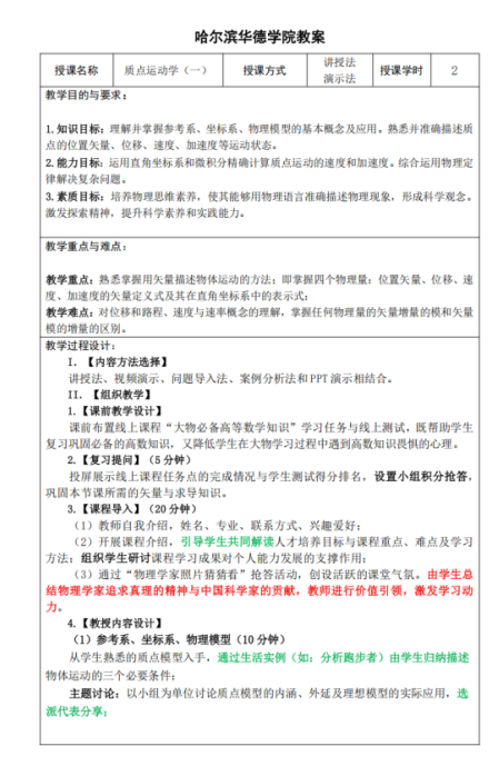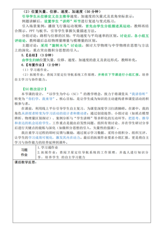 教案是SC教学改革理念落地的重要载体。为将SC教学设计融入教学全过程,优化传统教案“重讲授、轻互动”的环节,物理教研室利用假期,组织教师重新撰写并梳理教案,推动教案改进。