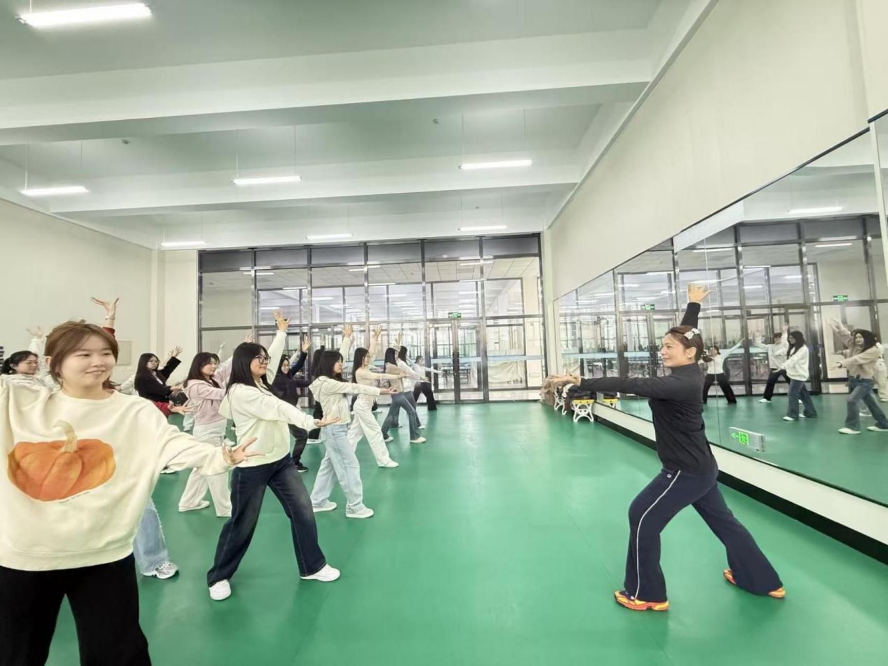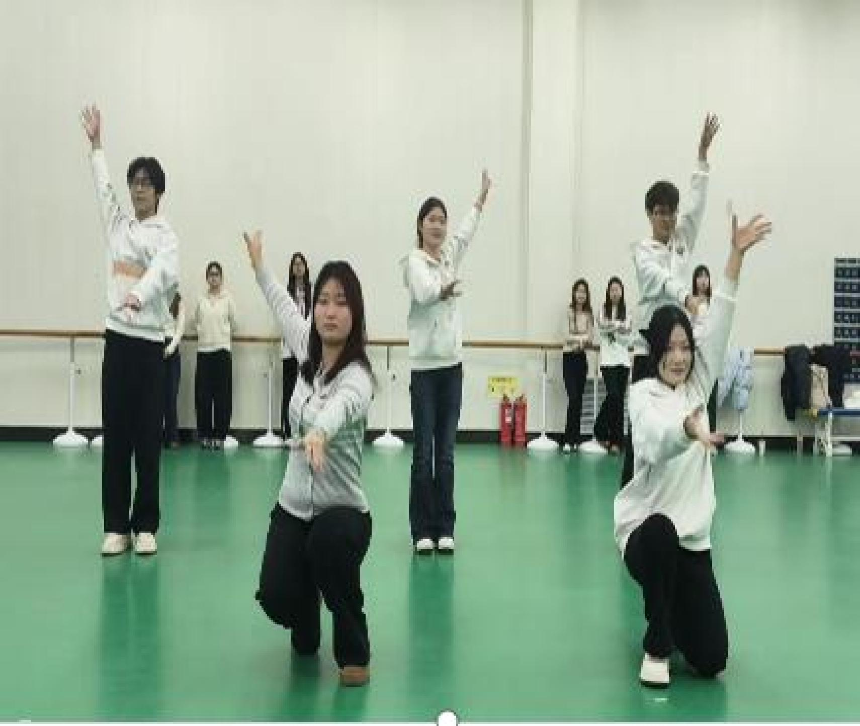 在“主题化创编 ”环节,课程巧妙地将爱国主义教育融入肢体律动之中。以《我 爱你中国》为核心曲目的思政套路创编成为课程思政融入点:例如,部分小组通 过大幅度的臂部伸展模拟“森林 ”与“群山 ”,另一部分小组则利用队形变换呈 现“奔涌的浪花 ”。这种沉浸式创编过程,使思政教育摆脱了生硬的说教,转化为学生自发的文化表达升华。构建了“情感浸润与素养培育 ”双维驱动的育人生态。