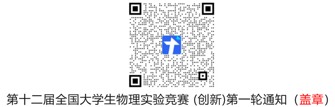 参赛学生需严格按通知要求准备相关作品资料(实物、研究报告、演示PPT、视频资料等),具体竞赛内容请扫描腾讯文档获取《2026第十二届全国大学生物理实验竞赛(创新)第一轮通知(盖章版)》。