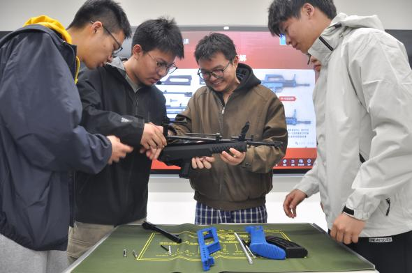 这绝非单纯的模型把玩,而是跨学科知识融合、国防精神体悟的深度教学。实物展示与动手拆解过程中,教师同步拆解枪械机械原理、导气式工作逻辑,将课本中的机械传动、材料力学、工程结构等知识与实物观摩环节紧密结合,让不同专业的学生都能找到知识契合点。车辆工程专业的学生坦言:“课堂上学的机械结构、弹簧复位原理,原本是抽象的理论知识,如今在枪械实物拆解中变成了触手可及的实物体验,这种沉浸式学习既震撼又深刻,让我们真切感受到国防工业的严谨与力量。”