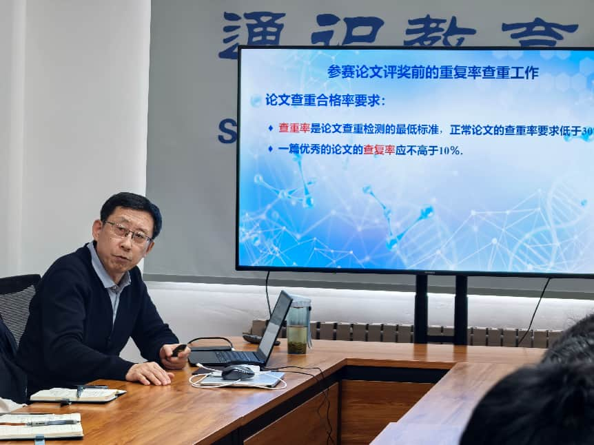 讲座紧扣教师能力提升核心,围绕赛题解读、论文写作、规则规范、风险防范四大板块展开系统培训。么焕民教授结合20余年指导经验,深度剖析竞赛选题特点,引导教师帮助学生精准选题、避开跟风误区,把握参赛主动权。针对论文指导,他强调“创新表述”是关键,详细讲解文献引用、参数调整、算法推导“三步法”,明确理论推导与稳定性分析是冲击高水平奖项的核心要素,为教师指导论文提供清晰路径。针对竞赛最新要求,么教授解读了AI辅助工具使用规范,强调必须公开声明、如实标注,坚守学术诚信。他结合真实案例,警示论文交易、竞赛期间泄密、格式不规范等问题带来的严重后果,指导教师严把纪律关、细节关。